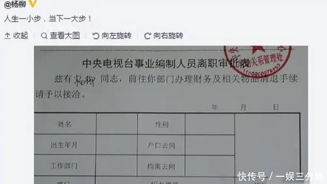 都说进入央视工作是人人羡慕的,因此杨柳这次的辞职,让很多人产生质疑。 从杨柳的离职配文上能看出来,他的离职是为了去追求更大的世界。 但是网友们质疑杨柳离开了央视还能有这么高的成就吗?离了央视要去干什么呢?