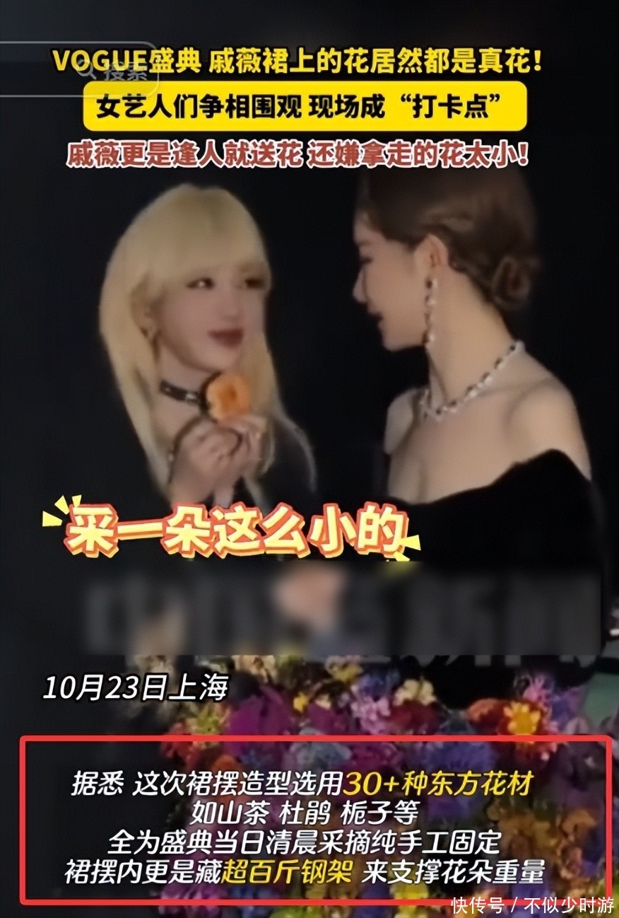 她的团队为其量身定制了一条前所未有的真花礼裙。
