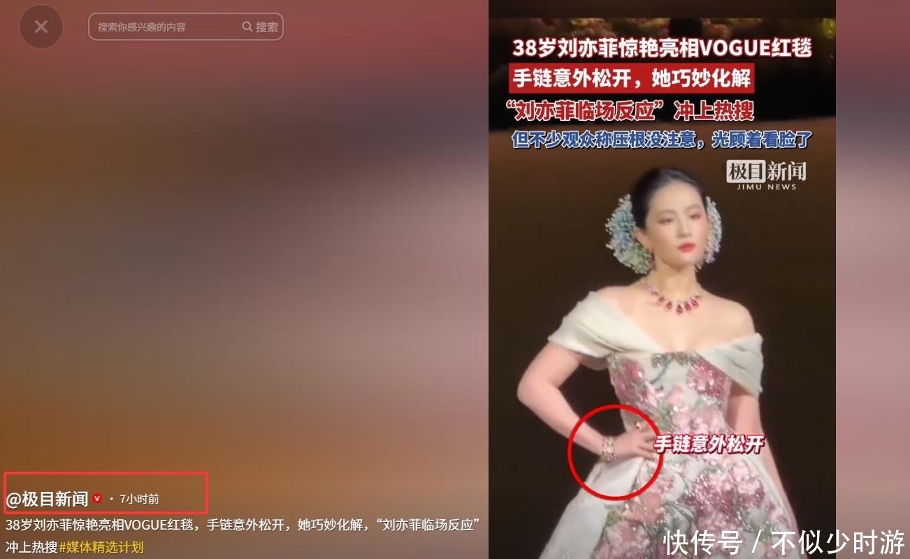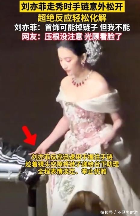 接近红毯终点时,她的手链突然松动脱落。