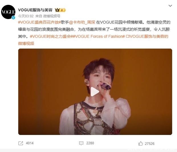 一句话既表达遗憾之情,又呼应了VOGUE“百花齐放”的主题立意。