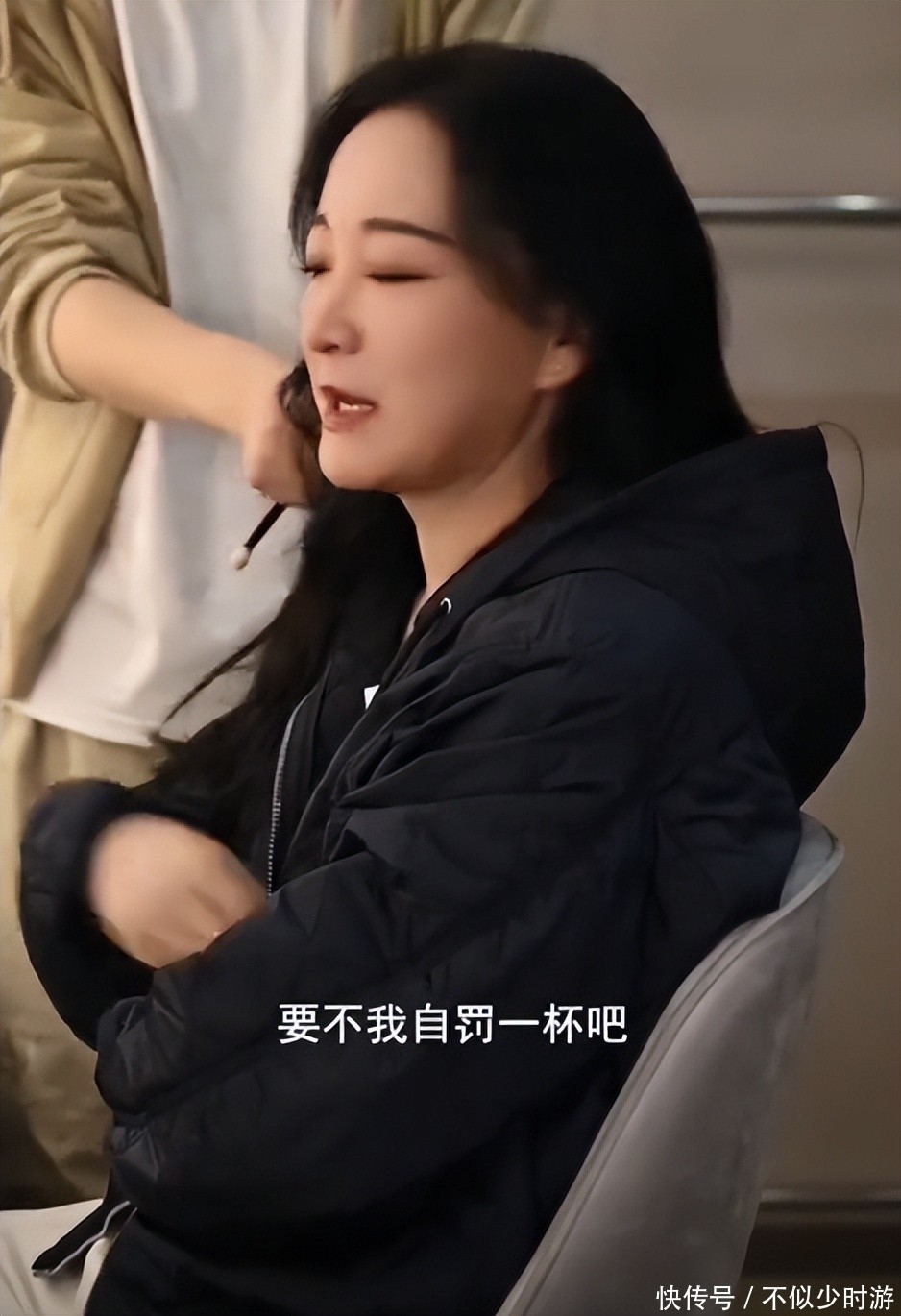 她在镜头前举起空杯自罚一杯,动作自然洒脱,瞬间唤醒观众对她小品舞台的记忆。