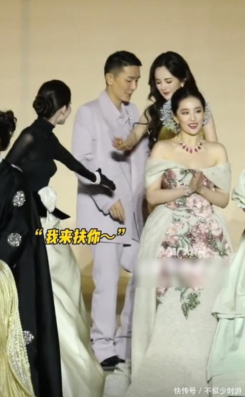 当杨幂走近时,她还自然伸手搀扶对方,动作流畅且体贴入微。