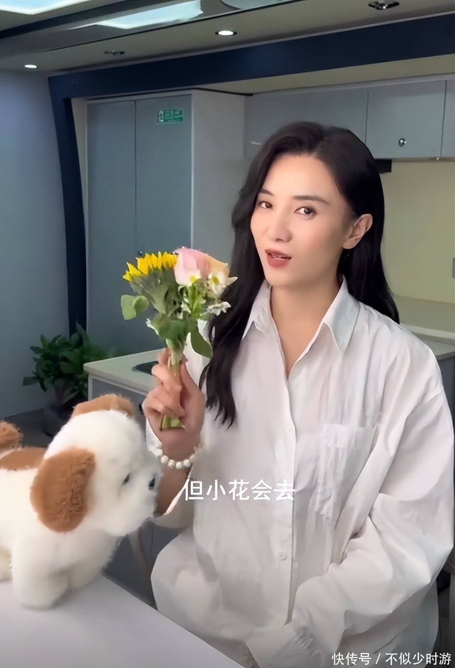 她还主动向周围人赠送手中鲜花,举手投足间尽显亲和力。
